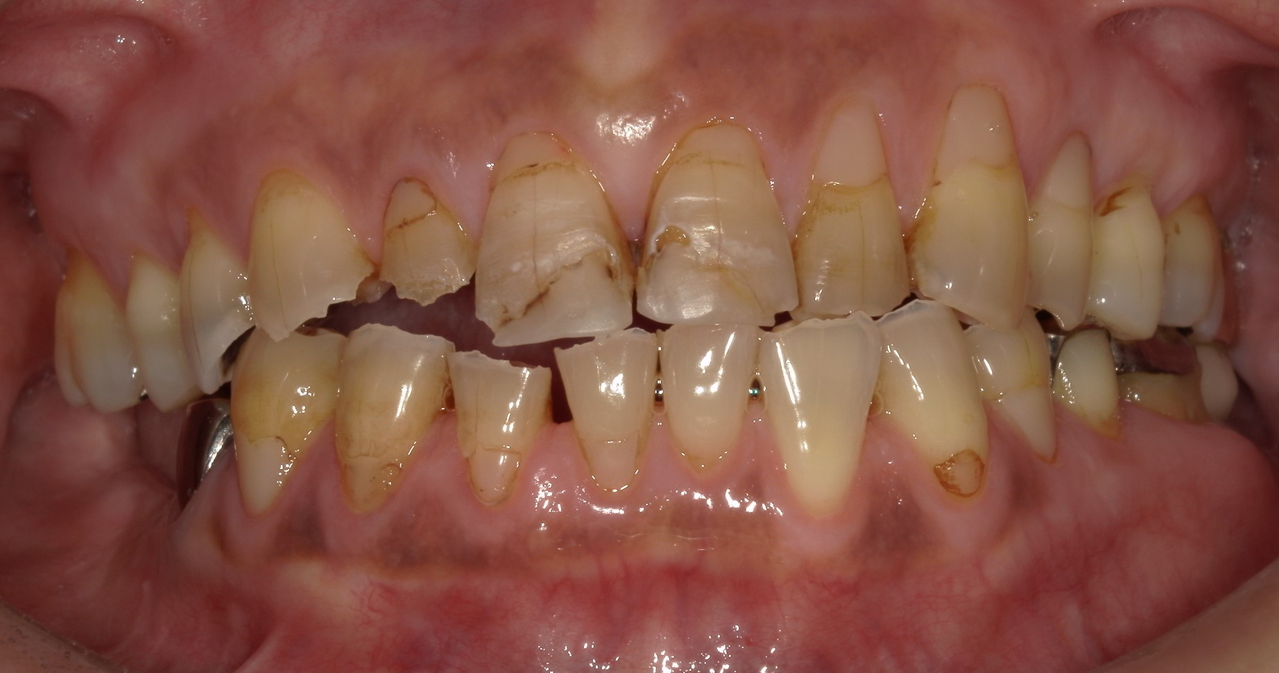 奥歯は欠損になっており、前歯は咬み合っていない状態