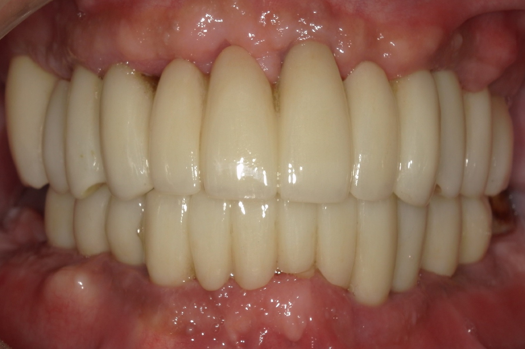 ・とりあえず抜歯予定の歯を利用し咬み合わせを作り、インプラントを上顎7本、下顎6本埋入 (2日に分けて)