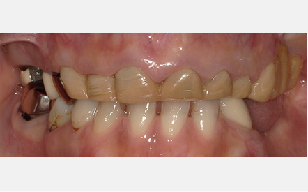 →左下奥歯はなくなり、咬合障害。仮歯の中も重度の虫歯が広がっていた。